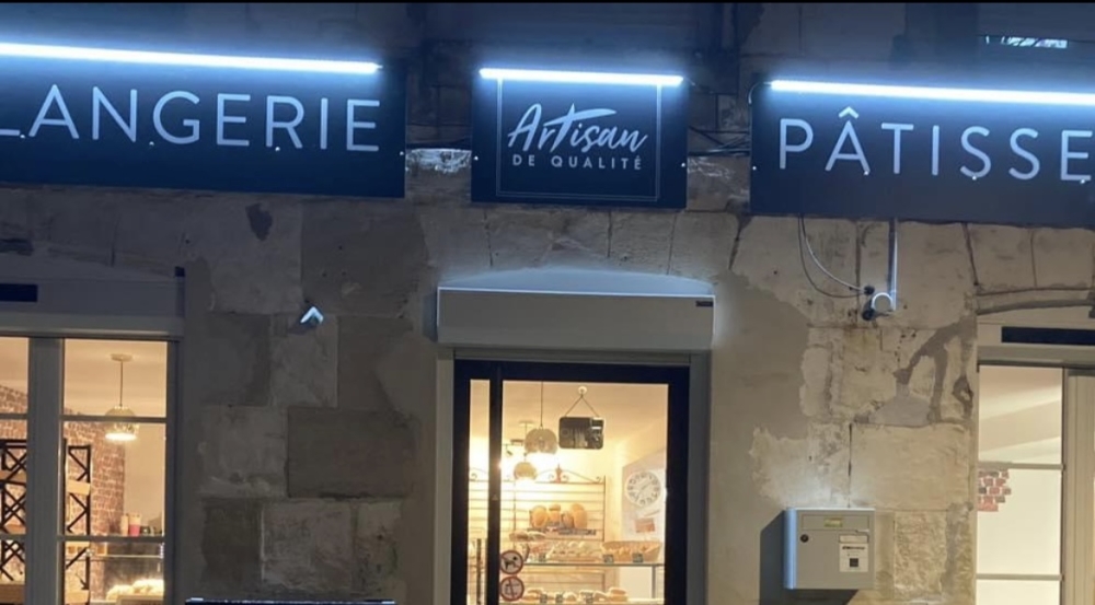 Installation d’un ruban led sur l’enseigne d’une boulangerie contrôlée par une horloge.