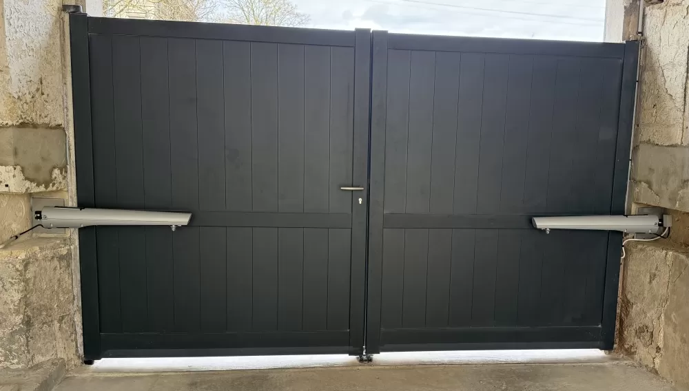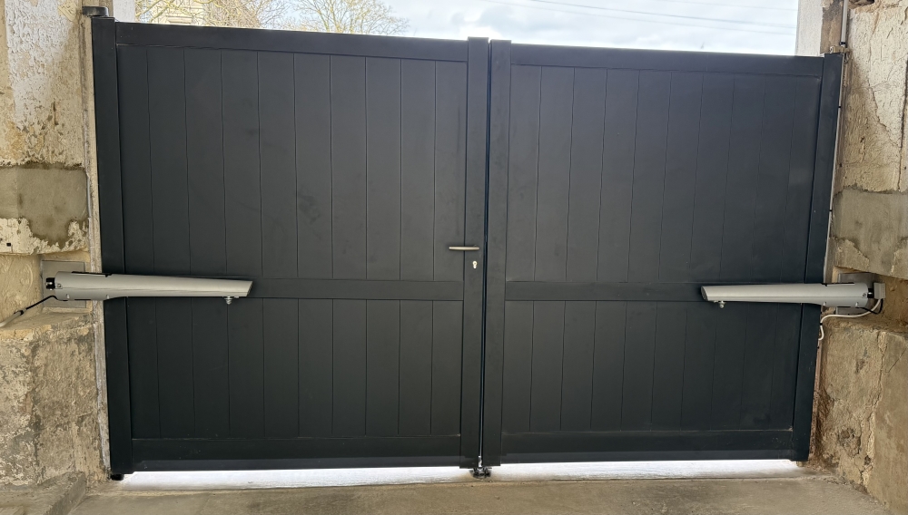 Pose motorisation de portail à Fitz James avec création de niches par un maçon pour accueillir les moteurs.